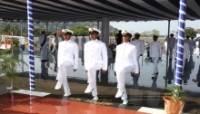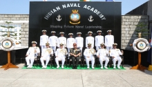 On completion of the parade, the proud parents and guardians of the passing out courses shipped the Naval and Coast Guard epaulettes, known as ‘Stripes’, on the shoulders of their wards, thus symbolising their transformation from ‘cadets’ into full-fledged Navy and Coast Guard Officers. The Reviewing Officer and other dignitaries shipped the stripes of the medal winners and congratulated all the trainees for their successful completion of the rigorous training. On completion of the training at the Indian Naval Academy, these officers will proceed to various Naval and Coast Guard ships and establishments to further consolidate their training in specialised fields.