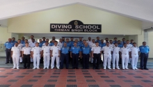 A Passing Out ceremony for 22 trainees (10 officers and 12 sailors) from friendly foreign countries, namely Sri Lanka, Mauritius, Myanmar, Philippines, Bangladesh and Maldives, was held on 13 July 2019 at Diving School on completion of the Clearance Diving Course. Lieutenant Farhan Ishrat from Bangladesh and KDWHK WMDP Bandaragah, PO (DIV) from Sri Lanka were adjudged as the Best Divers in the officers' and sailors' course respectively. The Mahavir Trophy for Best Sailor of the PO Qualification course, consisting of 12 Indian trainees, was awarded to Abhishek, LS (CD). The Chief Staff Officer (Training), SNC felicitated the passing out trainees on successful completion of the course, which taught them advanced diving skills, including Mixture Diving, Underwater Salvage, Explosive Ordnance Disposal and Combat Diving. He also commended all instructors for their dedication and professionalism in ensuring that the course graduated with high professional skills and competence.