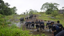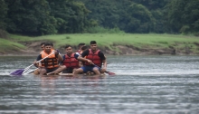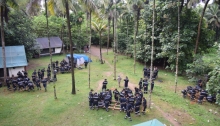 100 officer trainees of the 93rd Integrated Officers’ Training Course from Centre of Excellence in Ethics, Leadership and Behavioural Studies (CELABS), Kochi participated in an Outward Bound Exercise in a jungle location of Western Ghats from 24 to 26 August 2019. The exercise aimed to inculcate espirit-de-corps, develop leadership skills, reinforce a spirit of adventure and build confidence amongst the young officers. The activities during the OBE included jungle trek, river rafting using rafts constructed by the team, group dynamic games and camp fire. FOC-in-C South interacted with the trainees during the camp fire.