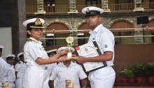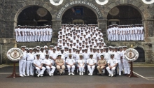 The Passing out Parade and valedictory function of MED-II ‘Q’ and POM ‘Q’ courses was held on 07 September 2019 at School of Medical Assistants (SOMA). 140 Probationary Medical Assistants (PMAs) joined SOMA on 18 March 2019 for MED-II ‘Q’ course and the POM ‘Q’ Course, comprising 48 trainees commenced on 29 July 2019. The trainees underwent theoretical, practical and simulation-based training in various medical, surgical and nursing care procedures. The trainees also participated in extra-curricular activities like sports, quiz, debate, educational visits and cultural events for all round development. The higher rank courses have also been trained on human simulator and advanced task trainers. Nishad Ahammed A, PMA was adjudged best trainee in the PMA course. The POP was reviewed by Commanding Officer, INHS Asvini.