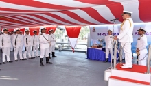 A batch of 168 Officer Sea Trainees, including seven foreign trainees, of the 96th Integrated Officer Trainees Course (IOTC) passed out on 05 December 2019 at an impressive Passing Out Divisions held onboard INS Magar, on completion of their afloat training on board ships of the First Training Squadron based at Kochi. Rear Admiral RJ Nadkarni AVSM, VSM, Chief of Staff, Headquarters Southern Naval Command reviewed the Divisions and awarded trophies to the meritorious Sea Trainees. The 1TS comprises Indian Naval Ships Tir, Magar, Shardul, Sujata, Indian Coast Guard Ship Sarathi, and the Sail Training Ships Tarangini and Sudarshini.
