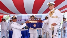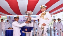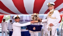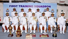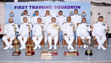 The coveted Chief of the Naval Staff Trophy and Telescope for the Best All Round Sea Trainee was awarded to Sub Lieutenant Sanjeev Kumar Singh. Sub Lieutenant Ajay Kumar received the Binoculars for standing First in Overall Order of Merit. Sub Lieutenant Sourav Kondal was awarded FOC-in-C East Rolling Trophy for showing maximum progress in service subjects during the term. Assistant Commandant Nischay Bhargava received the DG ICG Trophy for the Best Coast Guard Sea Trainee while Sub Lieutenant Chris P John was adjudged the Best Sportsman and awarded the FOC-in-C South Rolling Trophy.