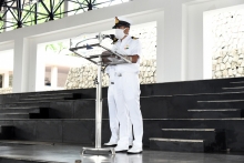 The opening address by Lt Cdr Sarang Joshi, Adjutant, INA was followed by a farewell address by Hon Sub Lieutenant Azad Singh, to the passing out courses. Midshipman Rohit Dagar delivered the vote of thanks on behalf of all passing out courses, acknowledging the contribution of the instructors in their transformation to officers, committed to the core values of Duty, Honour and Courage.