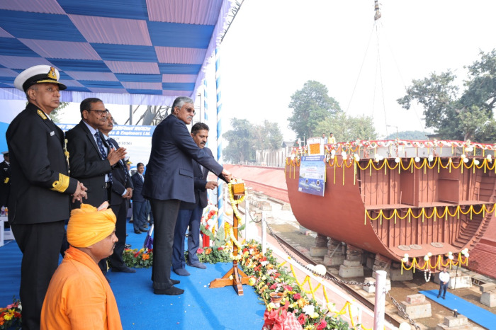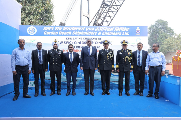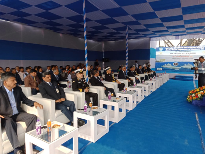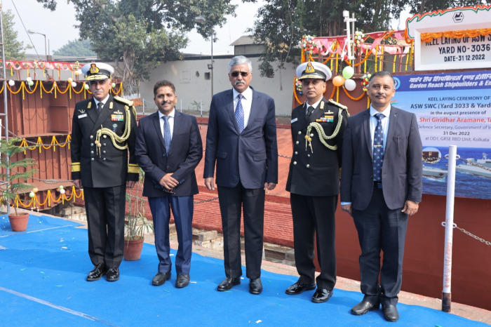 Keel laying of the two warships (Yard 3033 and Yard 3036) of Anti-submarine Warfare Shallow Craft (ASW SWC) project under construction by GRSE, Kolkata, was undertaken on 31 December 2022 by Shri Giridhar Aramane, IAS, Defence Secretary.