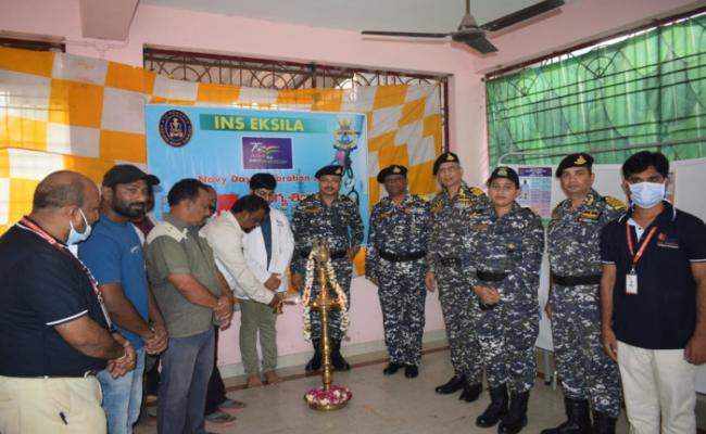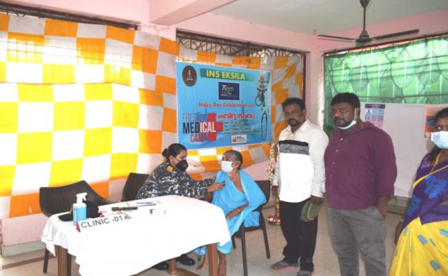 As part of Navy Day Celebrations, Indian Navy conducted a Community Eye Checkup, Health and Nutrition Awareness Camp for the residents of Mulagada, Yeduruvani Palem, Pilakavani Palem and Gondesivani Palem villages with support from Sankar Foundation Eye Hospital, Visakhapatnam. The camp was organised under community development initiative of ENC at Gondesivani Palem Community Hall. The medical camp was inaugurated by Surg Rear Admiral R Ravi, CMO, ENC. Commodore Sanjay Adhana, Commanding Officer, INS Eksila and Surg Commodore Rohit Sharma Commanding Officer, INHS Kalyani were present for camp. Medical officers and staff from INS Eksila and INHS Kalyani and two opthomologists from Sanakr Foundation Eye Hospital conducted the medical camp in which over 200 local villagers including pregnant women and elders were extended free consultation and medicines. The attendees were also given health supplements during the camp.