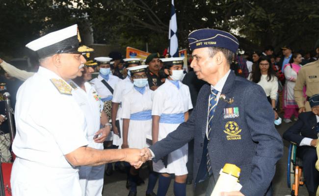 Under the aegis of Navy Foundation Mumbai Chapter NFMC, annual Veterans Day Parade was conducted on 08 January 2023 at Marine Drive. The parade was led by three senior veterans aged above 85 years. The contingent included gallantry award winners and veterans of Indian Navy, Indian Army and Indian Air Force proudly marching in platoons, donning their hard-earned medals. Hon'ble Governor of Maharashtra, Shri Bhagat Singh Koshyari, flagged-off the parade, in presence of Vice Admiral AB Singh, FOCINC WNC, Lt Gen HS Kahlon GOC Maharashtra, Gujarat and Goa Area, RAdm AN Pramod FOMA and AVM Rajat Mohan AOC, MAO. The parade generated lot of enthusiasm amongst citizens of Mumbai that watched nearly 600 veterans, including those that fought the nation's wars, and Veer Naaris participating in it with great zeal and patriotic fervour.