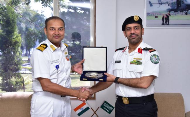 A five member delegation of Royal Saudi Naval Forces visited SNC, Kochi from 09 to 12 January 2023. The delegation headed by Staff Capt Bin Zayed Hisam Abdulrahman A interacted with Commodore Ajay Shekhar Shukla, CSO (Training) and discussed bilateral training initiatives between two countries. The training delegation was briefed on varied aspects of training imparted at Training Command of Indian Navy. During visit, delegation witnessed demonstration of state of the art training facilities and simulators. A visit onboard INS Sujata of First Training Squadron showcasing afloat training facilities and methodologies was also conducted. The delegation proceeded to INA, Ezhimala for further interaction and acquaintance on training aspects.