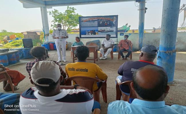 Coastal Security awareness campaign aimed at bringing awareness among coastal populace was organised by NOIC Kerala at Mopla Bay, Kannur on 19 January 2023. A team of one officer and three sailors interacted with local fishing community and conducted outreach program in coordination with Dept of Fisheries and Coastal Police, Govt of Kerala. As part of campaign various facets of coastal security including likely threats from sea and role of fishermen as 'Eyes and Ears' of security agencies as an integral part of coastal security construct were covered. The interaction also conveyed key aspects of safety precautions at sea and SAR organisation. Active participation by fishermen during interaction was indicative of enthusiasm and involvement amongst coastal populace. The interaction was received well by audience and efforts of SNC was appreciated by all stakeholders.