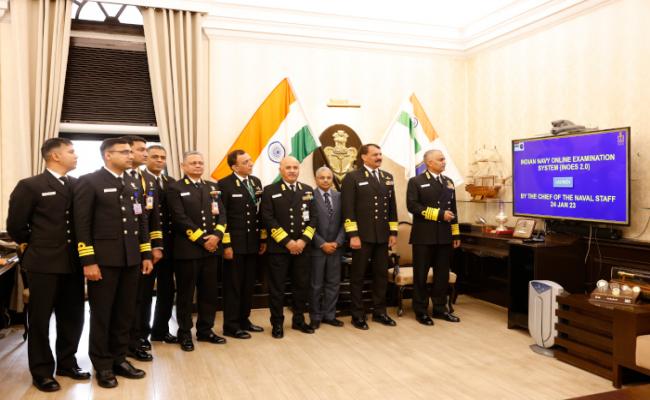 Admiral R Hari Kumar CNS, launched IndianNavy Online Examination System INOES2.0 on 24 January 2023 in presence of all PSOs of Indian Navy. INOES connects 23 Designated Online Examination Centre’s (DOECs) with 400 examination nodes located across India for conduct of online naval in-service examinations. INOES 2.0 has automated complete examination process, starting from registration of candidates to result promulgation. This would result in substantial manhour savings spent on manual registration, setting of question papers, conduct of examination, invigilation and paper evaluation. The new version, in addition to automation, has provided all naval personnel with an “Individualised Dashboard”. Details pertaining to ongoing and upcoming examinations, result history etc, are made available at click of a button for every individual. The system allows naval personnel to register for online examinations from convenience of their work space over naval intranet. Similarly, a “Central Dashboard” for live monitoring of conduct of examination has also been set-up at DNE at Naval Headquarters, Delhi. INOES 2.0 would shorten examination cycles by over 50% in most cases and also drastically minimise requirement of Indian Navy personnel travelling to nearest Command/ Area Headquarters for appearing in examination resulting in manhour and financial savings. Approximately 4000 naval personnel would appear in these examinations using INOES 2.0 every year.