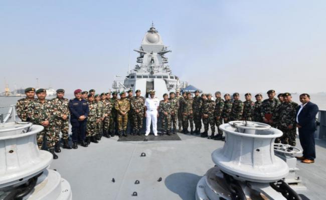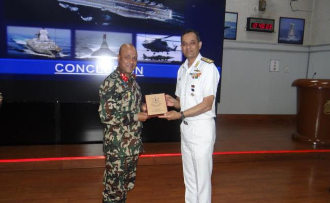 Maj Gen Santosh Kumar Dhakal, Commandant, Nepal Army Command and Staff College NACSC, along with instructors and 74 student officers, including five students each from Bangladesh, Nigeria, USA, Maldives and Sri Lanka visited WNC on 24 January 2023. The student officers interacted with Rear Admiral Kunal Singh Raikumar, CSO(Ops) and visited indigenously built frontline warships and submarine of Indian Navy. They were briefed about the role and operations of Command as well as challenges faced in IOR.
