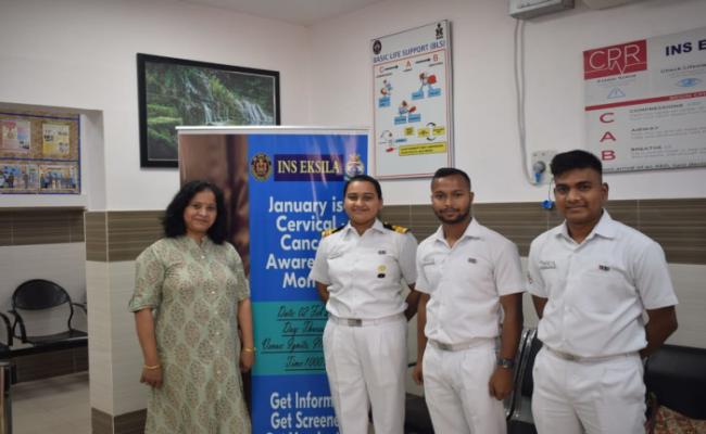 As part of Cervical Cancer Awareness Month, INS Eksila conducted a lecture cum screening camp for over 100 ladies from Naval fraternity and defence civilians on 02 February 2023. The medical camp was conducted in association with Mahatma Gandhi Cancer Hospital and Research Institute, Visakhapatnam.