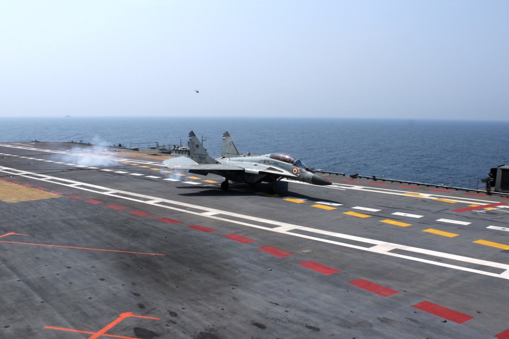 In pursuance to nation’s goal to achieve ‘AatmaNirbharta’, Indian Navy has recently landed the LCA (Navy), the indigenous technology demonstrator fighter (lead in for the Twin Engine Deck Based Fighter) onboard the indigenous aircraft carrier INS Vikrant. The aircraft was flown by an Indian naval test pilot. This niche capability is the result of Indian Navy’s long term vision of AatmaNirbharBharat.