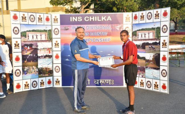 Inter-divisional cross country championship was conducted at INS Chilka on 12 February 2023. A total of 2465 Agniveers including 245 women Agniveers alongwith personnel of Station Chilka participated in event. The race was not only a test of endurance but an overall assessment of physical and mental strength, camaraderie, resolve and fighting spirit of the trainees. Akbar Division won Inter-divisional cross country while Eklavya Division was adjudged runners up. In individual category Ravi Kumar, Agniveer (SSR) bagged first position and Gavade Vishal Krishna, Agniveer (SSR) came second. Amongst women Agniveers, first position was bagged by Nikita, Agniveer (SSR) and second position by Ritu, Agniveer (SSR). Commodore NP Pradeep, Commanding Officer, INS Chilka flagged off the event and felicitated the prize winners.