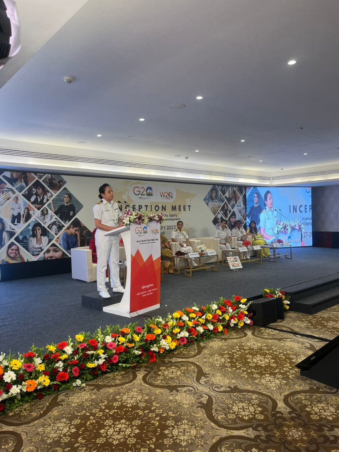 Women Officers of the Indian Navy and a spouse of a senior serving Naval Officer shared their experiences and association with the Indian Navy at the Women 20 inception meet under the aegis of G20 at Aurangabad on 28 February 2023. Speaking to the audience under the theme Breaking the Barriers : Stories of Unconventional Women , their thoughts and stories were reflective of gender empowerment and inclusivity in both letter and spirit in the Indian Navy. Each had something unique and special to say.