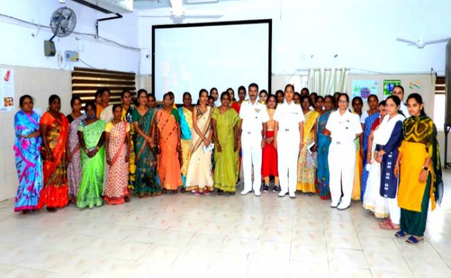 INS Circars celebrated International Women's Day on 06 March 2023. The Commanding Officer, INS Circars was the chief guest for the event. The event commenced with a brief presentation on Women's Day, the role of women in the society and recent Government of India schemes for upliftment of women and their empowerment. Dr V Bhavani Devi, working as the Office Superintendent at INS Circars presented her doctorate thesis on Socio Economic status of tribal women and how it has improved over the years by concerted efforts of the Govt and NGOs. A few women employees of the unit also shared their challenges and how they overcame it with the support and assistance of friends, colleagues, superiors and the own organisation ie., Indian Navy. CO Circars thanked all women employees for their contribution a role towards nation building.