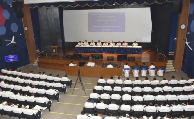 The Annual General Meeting of Naval Group Insurance Fund NGIF and Indian Naval Benevolent Association INBA for FY 21 - 22 was held at Naval Base, Kochi on 16 March 2023. The meeting was chaired by Admiral R Hari Kumar, CNS and attended by Vice Admiral MA Hampiholi, FOCINC SNC, Vice Admiral Deepak Kapoor, COL, Vice Admiral Suraj Berry, CPS, and other delegates from Indian Navy and Indian Coast Guard. Various welfare measures being undertaken were discussed during the meeting. IN and ICG personnel from outstation Units under SNC and all Units under ENC, WNC and ANC participated in interactive session through video conference.
