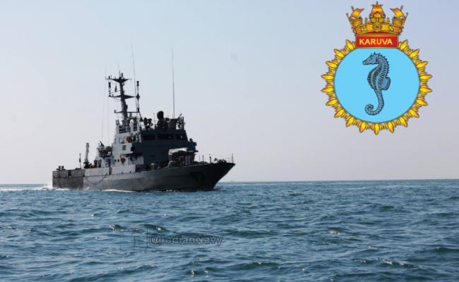 Fishing vessel Neelkanth, based at Okha, had been at sea for over a week with a crew of seven when, in the morning hours of 21 March 2023, the vessel experienced flooding in the engine room resulting from breaking of a sea water pipeline. The vessel raised a distress call when flooding became uncontrollable. INS Karuva patrolling in the area immediately rushed to rescue the vessel and brought the entire crew of seven onboard. Karuva then secured the fishing vessel alongside her and provided assistance to first de-flood the vessel and then repaired the defect in the ruptured pipeline.