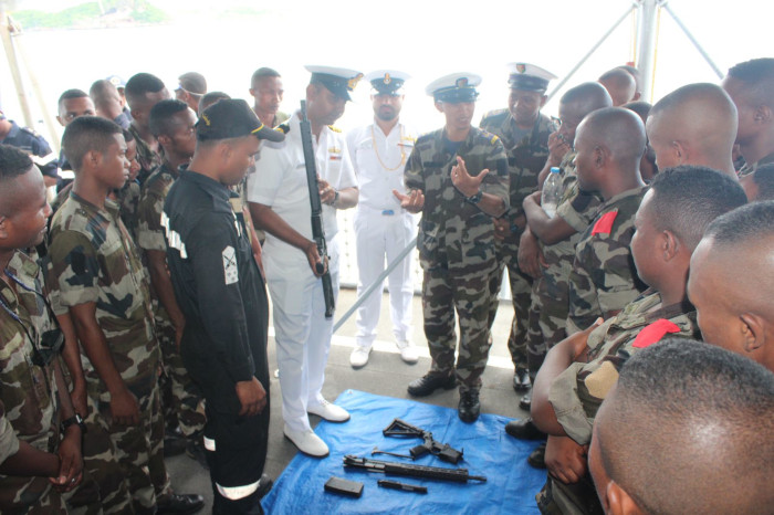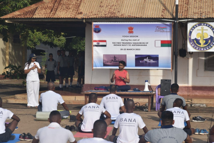 During the stay at Antsiranana, the ships undertook various training activities with Madagascar Navy which included NBCD, Fire Fighting, Weapon Handling and Visit Board Search and Seizure (VBSS). A yoga session for personnel from Indian and Malagasy Navy and friendly Volleyball and Basketball matches were also conducted. The visit of the ships of 1TS to Antsiranana has further enhanced the bilateral ties and cooperation between the two countries.