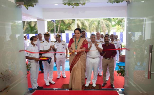 Smt Rasika Chaube, IDAS, Financial Advisor Defence Services, during her visit to the ENC at Visakhapatnam 02 May 2023, interacted with VAdm Biswajit Dasgupta, CINC, ENC and was briefed on various Operational activities and initiatives of ENC. The FA(DS) inaugurated the state of the art Submarine Damage Control and Fire Fighting Training Facility - ' Rakshak', in presence of the CINC. In a major boost to IN's emphasis on practical training, the Indigenously designed facility simulates real-time scenarios for both fire and flooding emergencies, akin to an actual submarine. Mrs Chaube also chaired a SPARSH workshop conducted by officials of PCDA (Prayagraj), under the aegis of ENC, for all units under ENC, including the Veterans. The workshop created awareness among retiring personnel and veterans with respect to SPARSH which has been implemented as the Central Digital Pension Disbursement System for Defence Pensioners.