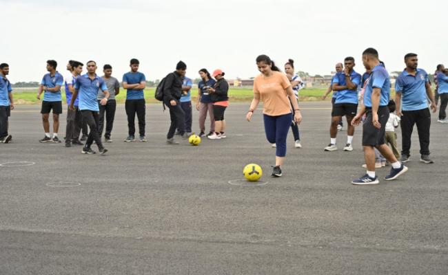 In pursuance to “Khelo India” initiative and as part of 70th anniversary activities, a morning walk cum games was organised by INS Garuda on 05 May 2023. The event saw enthusiastic participation of more than 700 personnel and their families which was flagged off by Commodore Sandeep D Sabnis, Director NIAT. Numerous fun activities and games including badminton, football, table Tennis were organised at the venue. Spirited and energetic response of the participants made it a memorable event. Khelo India initiative was truly imbibed towards creating awareness to embrace physical fitness as a way of life.