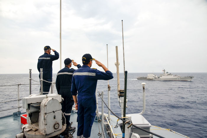 The two-day sea-phase witnessed a wide spectrum of evolutions at sea including tactical manoeuvres, cross deck landings by helicopters, seamanship evolutions and other maritime operations. Apart from honing skills in the maritime domain the exercise enhanced interoperability and demonstrated the ability of Indian and ASEAN navies to operate as an integrated force to promote peace, stability and security in the region.