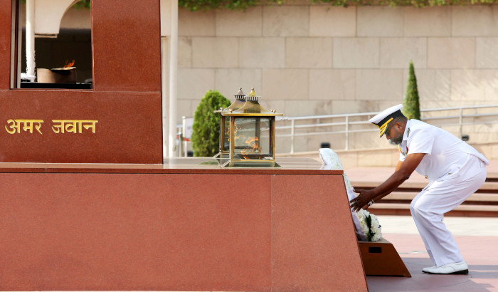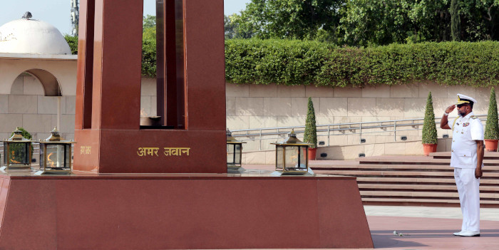 VAdm Priyantha Perera called on Adm R Hari Kumar, Chief of the Naval Staff on 24 May 2023 at New Delhi and held discussions on collaborative mechanisms towards ensuring peace and security in the region. He was received with a ceremonial Guard of Honour at the South Block Lawns. Earlier in the day he paid homage to the bravehearts at the National War Memorial.