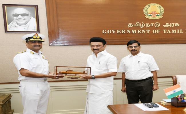 RAdm RK Dhingra, FOTNA called on Hon'ble CM of Tamil Nadu Thiru MK Stalin and briefed him about Naval Operations being undertaken in Tamil Nadu Area for Maritime Security in region.