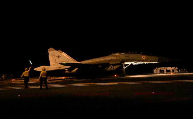 INS Vikrant, the first indigenous Aircraft Carrier and the most complex warship ever built in our country by M/s CSL, has undergone extensive Sea trials since her maiden sailing on 04 Aug 2021. Commissioned into Indian Navy on 02 Sep 2022 by Hon'ble PM of India, the Carrier is a big boost to Atmanirbhar Bharat vision of GOI. The Carrier is presently undergoing Air Certification and Flight Integration Trials with Rotary Wing and Fixed Wing aircraft for achieving Combat Ready state. As part of trials, maiden day landing of MiG-29K and indigenous LCA(Navy) was achieved on 06 Feb 2023. Since then, day and night landing trials of all helicopters in Naval inventory have been progressed. In continuance with the impetus on Aviation Trials, Indian Navy has achieved yet another historic milestone by undertaking maiden night landing of MiG-29K on INS Vikrant on 24 May 2023. This challenging accomplishment, within three months of maiden day landing demonstrates resolve, skill and professionalism of Indian Navy, Vikrant crew and Naval Pilots.
