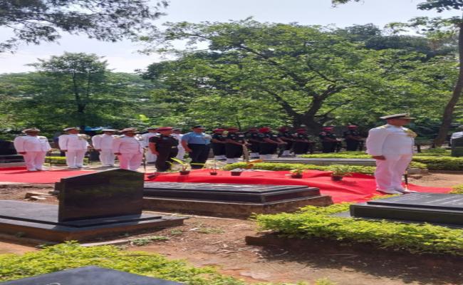 RAdm KM Ramakrishnan, FOK Naval Area laid a wreath at final resting place of Late Adm Ronald Lynsdale Pereira (Retd), the 9th CNS, on 25 May 2023 as part of Centennial Celebrations. Personnel from Indian Army, Indian Navy and Indian Air Force along with veterans led by RAdm Sampath Gopal (Retd), President Navy Foundation Bengaluru Chapter were present on the solemn occasion.