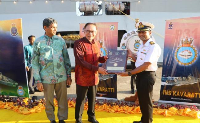 His Royal Highness Al-Aminul Karim Sultan Sallehuddin ibni Almarhum Sultan Badlishah, the Sultan of Kedah, Datuk Seri Anwar Ibrahim, the Hon’able PM of Malaysia and senior Malaysian dignitaries including foreign minister Dr Zambry and Deputy Chief of Navy VAdm Sabri visited INS Kavaratti at Langkawi, Malaysia during LIMA23. The Sultan who is also a graduate of IMA, Dehradun, was briefed on design and capabilities of ship and was hosted for dinner onboard.