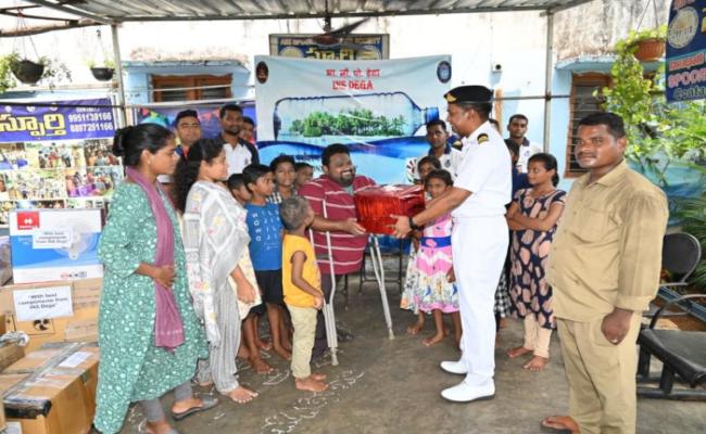 As part of World Environment Day, an outreach activity was organised by units under ENC at Visakhapatnam from 23 - 28 May 2023. The objective was to foster awareness on environmental issues while supporting children's education and growth. This initiative also aims to promote mindful and deliberate utilisation of resources and to empower younger generation to become environment stalwarts. Books, school bags, clothes, grocery items and educational materials were donated to needy during event.