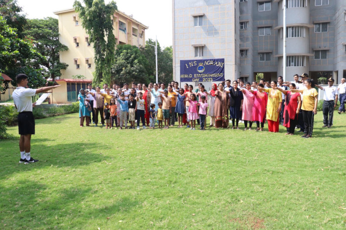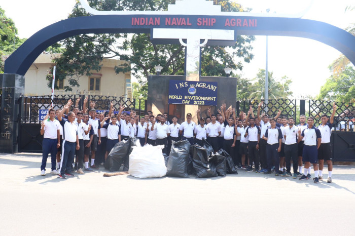 On occasion of World Environment Day 2023, INS Agrani enthusiastically took part in activities towards Mission LiFE. All Naval personnel and family members took pledge to commit and follow environment friendly habits. An awareness walk at Race Course, cleanship drive in naval premises and Sungam lake and Plantation drives were some of highlights of the day. The unit observed no vehicle day and executed various energy efficient measures in office spaces, accommodation blocks and residential areas. More than 200 personnel participated in campaign and 120 Kgs of plastic wastes were collected.