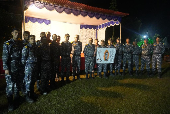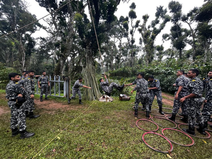 An Outward Bound Exercise (OBE) was conducted for 77 Officers of 102 IOTC at Suryanelli, Idukki District from 02 - 04 June 2023. The aim of exercise was to garner espirit-de-corps, imbibe leadership qualities, reinforce a spirit of adventure and promote teamwork in Young Officers. As part of three day camp, officers participated in various adventure activities. In addition, a fireside chat with Capt P Raj Kumar (Retd) was conducted for trainee Officers. RAdm Upal Kundu, CSO(Trg), SNC was chief guest for the camp fire on last day of exercise. During his address, he emphasised importance of effective organisation and team work.