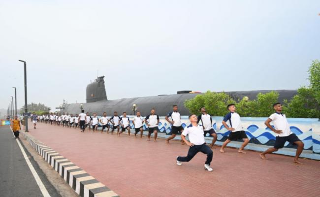 As a run up to International Day of Yoga 2023, Indian Navy conducted Yoga sessions at RK Beach Visakhapatnam and Naval Station Bheemunipatnam on 12 June 23 to promote the practice of yoga and raise awareness about its benefits among unit personnel and also general populace. A yoga camp, organised by INS Dega near Kursura Submarine Museum on RK Beach Road included various yoga asanas, pranayama and meditation techniques led by experienced yoga instructors. In a similar event, a Yoga Session organised by INS Kalinga in collaboration with Isha Foundation was conducted by Dr Rohit Verma in which 184 naval personnel of INS Kalinga, INS Karna, Naval Armament Inspectorate and staff of Defence Security Corps DSC participated.