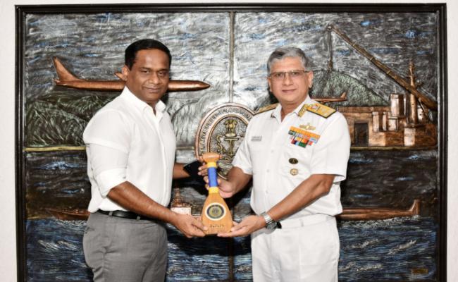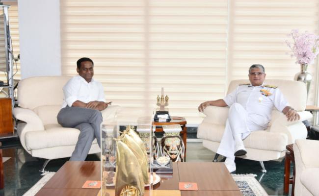 Dr Madhaiyaan Angamuthu, Chairman Visakhapatnam Port Authority VPA paid a courtesy call to VAdm Biswajit Dasgupta, FOCINC, ENC on 14 June 2023. The Chairman apprised CINC regarding performance of Port in recent years and ongoing efforts to further improve efficiency through development of State-of-the-art infrastructure. They also discussed various issues of mutual interest to Indian Navy and VPA. Highlighting the close relationship between the Navy and VPA spanning over last eight decades, CINC expressed his confidence over their continued partnership especially in light of proposed Naval Outer Harbour Project and basing of INS Vikrant at Visakhapatnam.