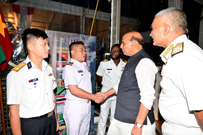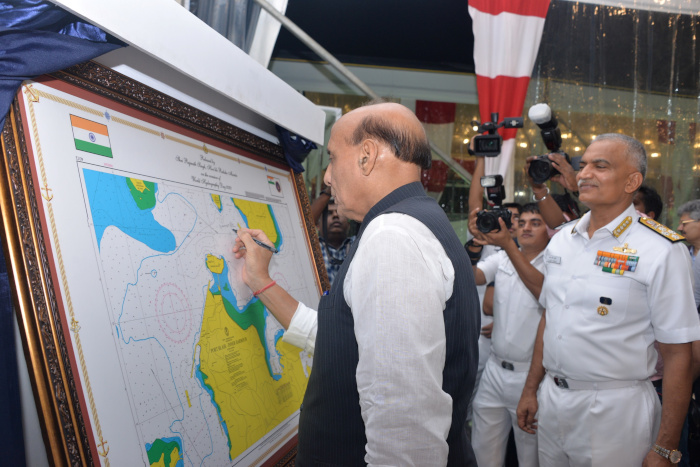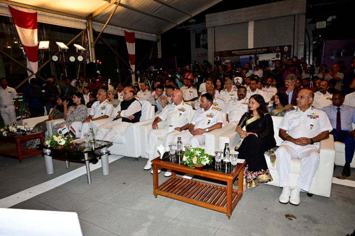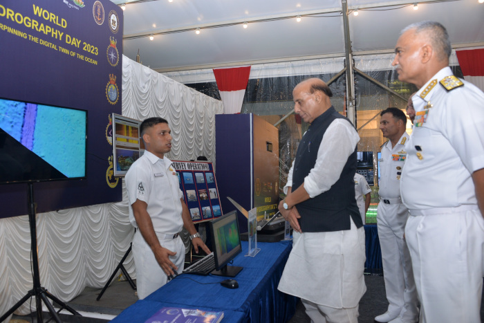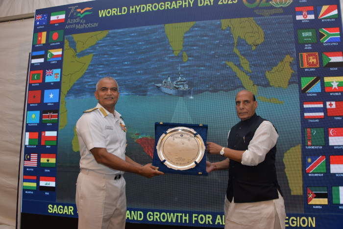 Commemorating World Hydrography Day, the Hon'ble Raksha Mantri unveiled navigation charts of Mauritius and the inner harbour of Port Blair at a ceremony onboard the indigenously built survey ships of the Indian Navy INS Jamuna, INS Sarvekshak and INS Investigator, on 20 Jun 2023. The event was hosted by Adm R Hari Kumar, Chief of the Naval Staff. VAdm Adhir Arora, Chief Hydrographer to the Government of India, VAdm Krishna Swaminathan, Controller of Personnel Services, RAdm J Singh, Chief of Staff, Southern Naval Command and other Senior Officers, and officers and sailors of Indian Navy’s Hydrography branch were also present on the occasion. A film highlighting the history and contributions of the Indian Hydrographic Department and its role in ensuring safe navigation, sustainable development and protection of the marine environment was shown. An exhibition of various survey equipment and foreign cooperation survey undertaken by the Indian Navy was also displayed. The survey ships of the Indian Navy are equipped with advanced technology, state of the art equipment and have been actively involved in mapping the vast IOR including ports and offshore infrastructures. On this occasion, the Hon'ble Raksha Mantri also interacted with the foreign trainees of Nigeria, Ghana, Vietnam, Indonesia, Bangladesh and Sri Lanka who are presently undergoing training at the National Institute of Hydrography, Goa.
