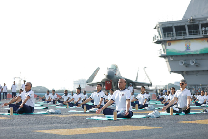 An exclusive video on the Indian Navy's outreach activities on the International Day of Yoga was streamed, emphasising the Ocean Ring of Yoga theme. In his address, the Raksha Mantri highlighted the role of yoga in fostering resilience, discipline, and overall well-being among the armed forces. He expressed his gratitude to all participants for their unwavering commitment and acknowledged their sacrifices in safeguarding the nation's security.