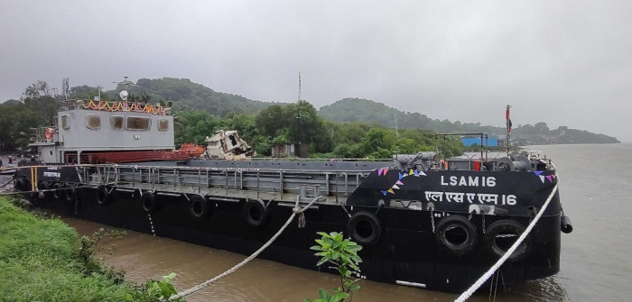 Ammunition Cum Torpedo Cum Missile (ACTCM) Barge, Yard 126 (LSAM 16) was launched by Cmde Sunil Kaushik, Warship Production Superintendent (Mumbai) on 19 Jul 2023 at M/s Suryadipta Projects Pvt Ltd, Thane. With all major and auxiliary equipment/ systems sourced from indigenous manufacturers, this Barge is proud flag bearer of “Make in India” initiative of Ministry of Defence.