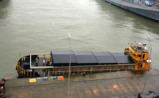 Contract for construction of 08 x Missile Cum Ammunition (MCA) Barge was concluded with M/s SECON Engineering Projects Pvt Ltd, Visakhapatnam in consonance with Atmanirbhar Bharat initiatives of GOI. First Barge of series LSAM7 (Yard 75) has been delivered to Indian Navy on 18 Jul 23 in presence of Cmde Iftekhar Alam, Commanding Officer, INS Tunir. The Barge has been built under classification rules of Indian Register of Shipping (IRS) with a service life of 30 years. With all major/ auxiliary equipment sourced from indigenous manufacturers, the Barge is proud flag bearer of Make in India initiative of MOD. Induction of MCA Barges will provide impetus to Operational commitments of IN by facilitating Transportation, Embarkation and Disembarkation of articles / ammunition to IN Ships both alongside jetties and at outer harbour.