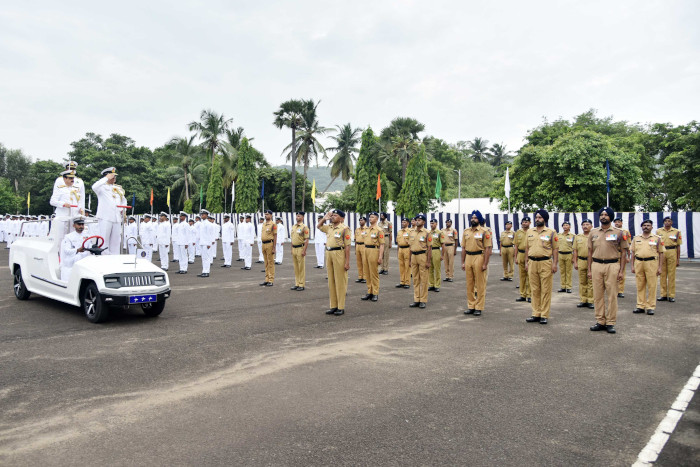 Eastern Naval Command (ENC) bid adieu to Vice Admiral Biswajit Dasgupta PVSM AVSM YSM VSM Flag Officer Commanding-in-Chief (FOC-in-C) ENC on his superannuation on 31 Jul 2023 at an impressive Ceremonial Parade held at the Naval Base Visakhapatnam. The Admiral inspected the Ceremonial Guard and reviewed platoons of naval and DSC personnel of the Command. The ceremony was attended by all Flag Officers and Commanding Officers of ships, submarines and establishments. This was followed by the traditional ‘Pulling Out’ ceremony.