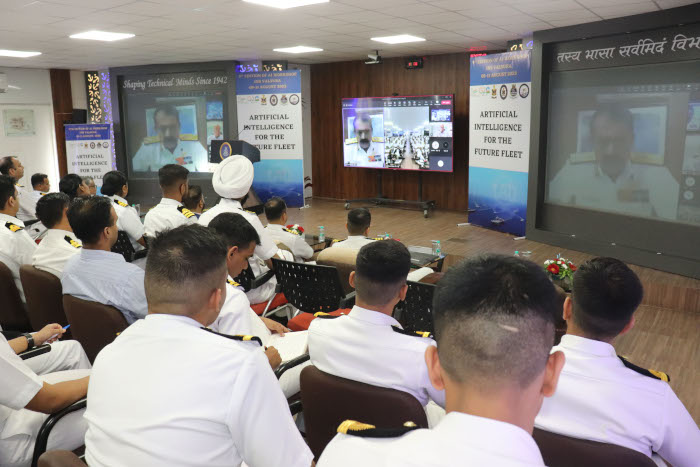 The 5th edition of the three day AI workshop on ‘Artificial Intelligence for the Future Fleet’ was organised at INS Valsura, Jamnagar from 09 – 11 Aug 2023. The key note address was delivered by VAdm MA Hampiholi,Flag Officer Commanding-in-Chief, Southern Naval Command. In his keynote address, he highlighted the initiatives taken by the Indian Navy in the niche field and stressed upon the importance of Artificial Intelligence and its applications for the future fleet.