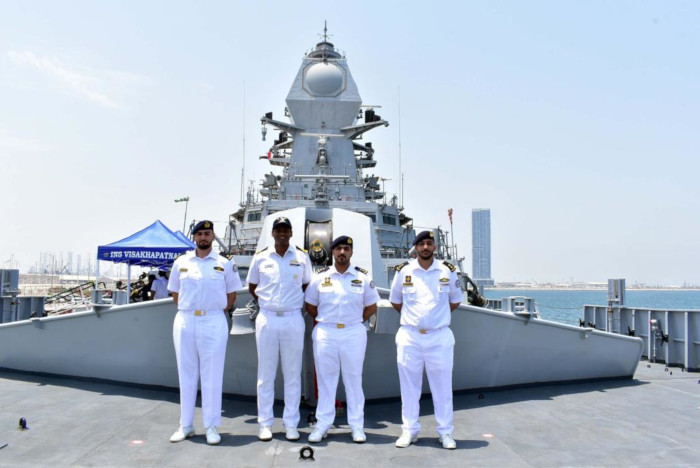 Two Indian Naval Ships INS Visakhapatnam and INS Trikand, under the command of Rear Admiral Vineet McCarty, Flag Officer Commanding Western Fleet, arrived at Port Rashid, Dubai on 08 Aug 2023 to participate in a bilateral Naval Maritime Partnership Exercise with the UAE Navy.