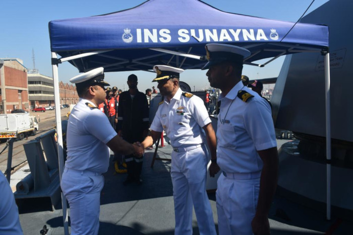 INS Sunayna entered port of Durban, South Africa on 21 Aug 2023. The ship undertook passage exercise with South African Navy Ship SAS King Sekhukhune I off Durban. Post exchange of pleasantries at sea, the ship entered Durban harbour. The ship was received by Cdr Kenneth Singh officiating Flag Officer Commanding Naval Base Durban and HCI Pretoria Officials.