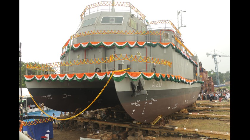 Contract for building five (05) Diving Support Craft (DSC) was signed between MoD and M/s Titagarh Wagons Ltd (TWL), Kolkata on 12 Feb 21. These ships are designed to undertake operational/ training diving operations in harbours and coastal waters. They are 30 m long catamaran hull ships, with a displacement of approx 300 tons. All five (05) DSC are anticipated to be delivered to Indian Navy in FY 2024-25