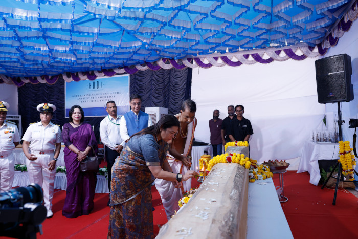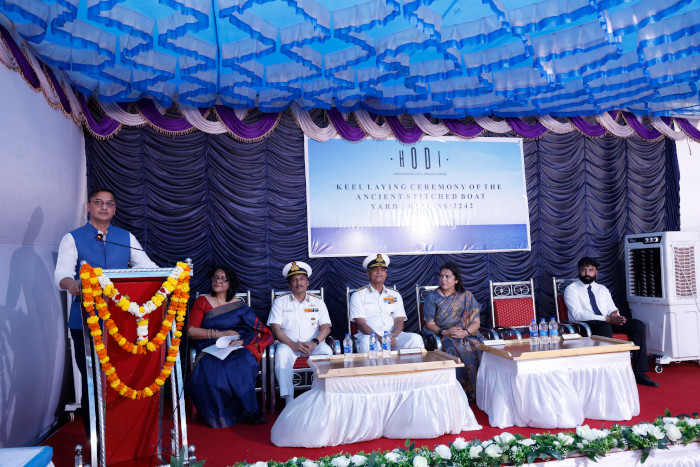 Highlighting the event as one reviving India’s Ancient Maritime Legacy, Smt. Meenakshi Lekhi, Hon’ble Minister of State for Culture and External Affairs, GoI said that she is “Extremely delighted to be part of the momentous keel laying ceremony of the Stitched Ship, which shall revive the 2000 year old Indian technology of stitching ships together through wooden planks. This unique initiative under the leadership of PM Narendra Modi Ji will glorify Bharat’s rich shipbuilding legacy and reminisce the ships that once sailed the oceans on our ancient maritime trade routes connecting Bharat to the world. A collaborative effort between Min of Culture, Indian Navy, Min of Ports Shipping & Waterways and MEA, will culminate with Indian Navy undertaking a unique voyage on the stitched ship along the traditional maritime trade routes using ancient navigation techniques. This remarkable project of rediscovery and revival will commemorate Bharat’s cultural and civilizational heritage, of which seafaring and shipbuilding was a significant aspect”.