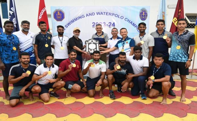 WNC Swimming and Water Polo Championship brought together spirited contest with 120 participants in 29 swimming events and 8 Water Polo matches over 5 days of competition, camaraderie and sportsmanship from 11 to 16 Sep 2023. Mumbai area emerged as winners of the championship and Fleet B the runners up. WD Singh MCPO II AOF of Mumbai Area was adjudged as the Best Swimmer. Cmde Amanpreet Singh K22, the chief guest for the closing ceremony, felicitated the winners. IM Panwar MCPO I PT (Hon Lt), retiring on 30 Sep 2023 after more than 36 yrs of service, was also felicitated by K22.