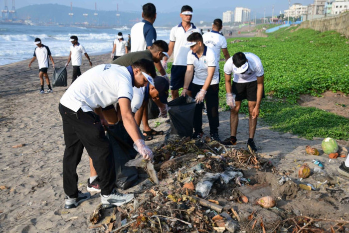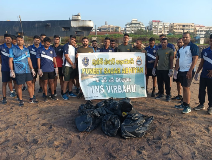 The 38th International Coastal Clean-up (ICC) Day and Puneet Sagar Abhiyaan (PSA) were conjointly celebrated by the Eastern Naval Command on 16 Sep 2023. On this occasion, Units in Visakhapatnam undertook a Coastal Clean-up Drive at Yarada, RK beach and Kalinga beach and all sea/waterfronts. Approximately, 1000 Naval and DSC personnel including their family members participated in the event. The event aimed to create awareness among the local populace to keep beaches clean, safeguard the environment and inculcate the habit of respecting coastal lines which in turn nurtures marine bio-diversity.