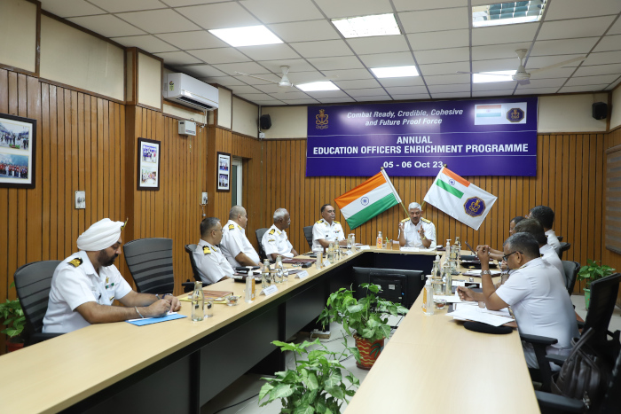 Indian Navy conducted its Annual Education Officers Enrichment Programme 2023 on 05 and 06 Oct 2023 at New Delhi. The programme was attended by R Adm Rajvir Singh, Principal Indian Naval Academy, Commodore G Rambabu, Commodore (Naval Education) and other senior officers of Education Branch of IN. The main objective of this programme was to discuss various policy initiatives and contemporary issues related to the branch and further improve its functional effectiveness towards growth and development of IN.