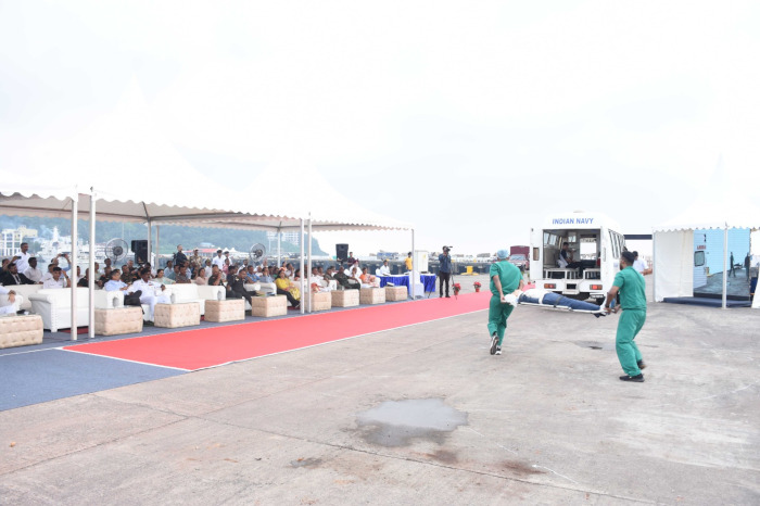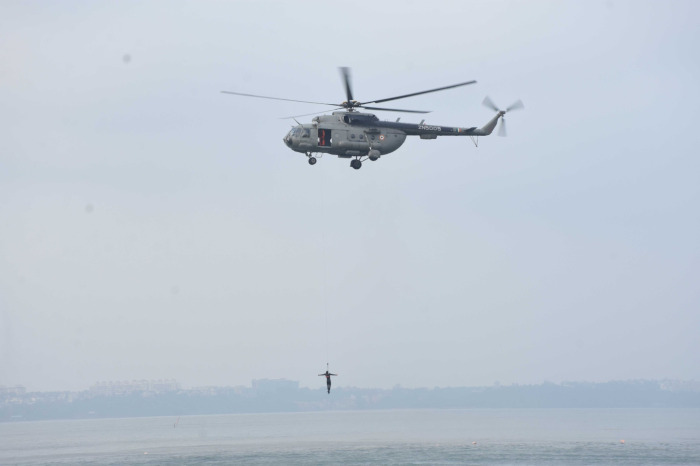The Annual Joint HADR Exercise 2023 (AJHE-23) 'CHAKRAVAT’ hosted by Indian Navy at Goa from 09-11 Oct 2023, concluded with a Multi-Agency Capability Demonstration at Mole Berth, within the Port of Mormugao, to showcase drills on rescue and relief. Teams from NDRF, Indian Navy, Indian Air Force, Indian Coast Guard and State Fire Services, Goa participated in the demonstration.
