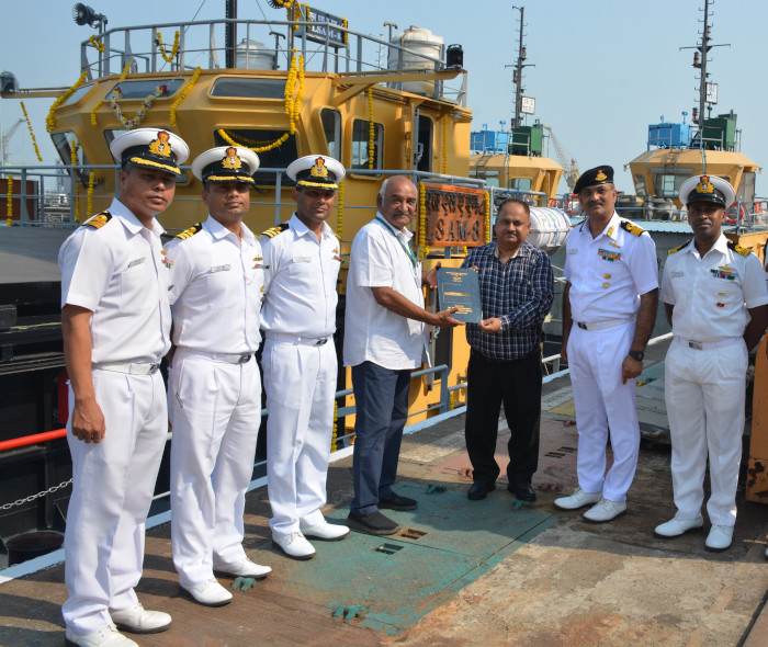 Contract for construction and delivery of 08 x Missile Cum Ammunition (MCA) Barge was concluded with M/s SECON Engineering Projects Pvt Ltd, Visakhapatnam, a MSME, in consonance with “Aatmanirbhar Bharat” initiatives of the Government of India. Second Barge of the series LSAM 8 (Yard 76) has been delivered to Indian Navy on 19 Oct 2023 in presence of Shri Puneet, INAS, Chief General Manager, NAD(Mbi). The Barge has been built under the classification rules of Indian Register of Shipping (IRS) with a service life of 30 years. With all major and auxiliary equipment/ systems sourced from indigenous manufacturers, the Barge is proud flag bearer of “Make in India” initiatives of Ministry of Defence.